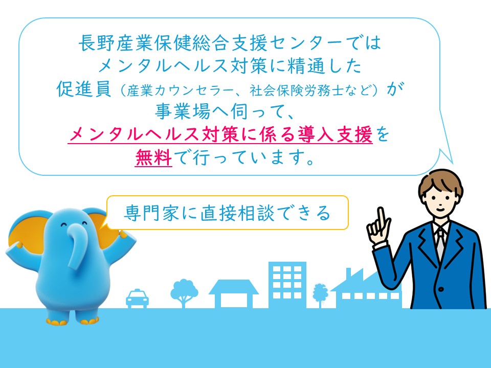 当センターでは「メンタルヘルス対策に係る導入支援」を無料で行っています。