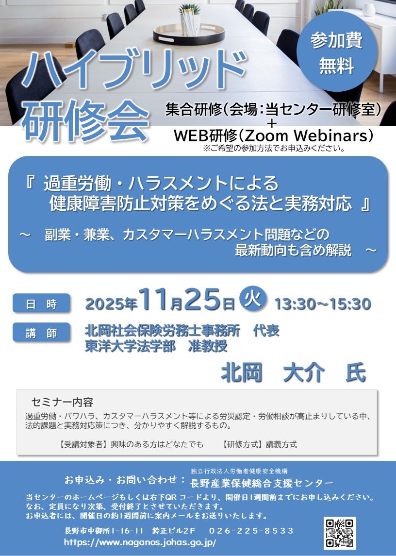 テーマ:「過重労働・ハラスメントによる健康障害防止対策をめぐる法と実務対応」